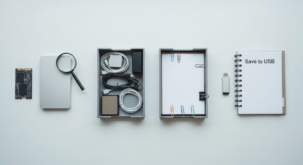 | 1 | SSDを物理的に取り外し、別環境で作業 | 上書き回避を優先 |