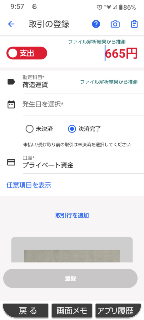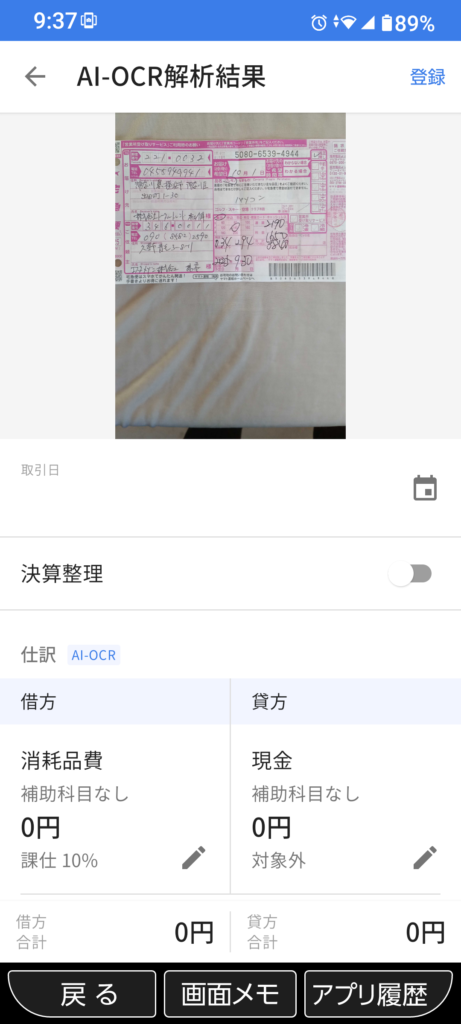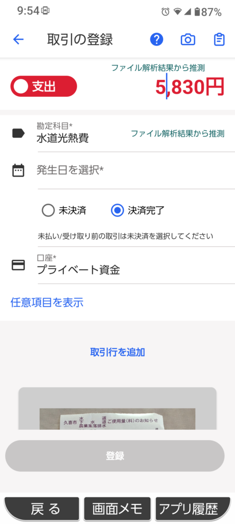 多くのツールでは、レシートを読み取ると勘定科目も自動で提案されます。