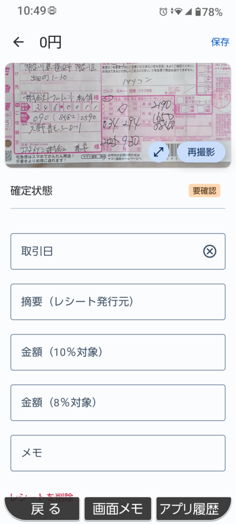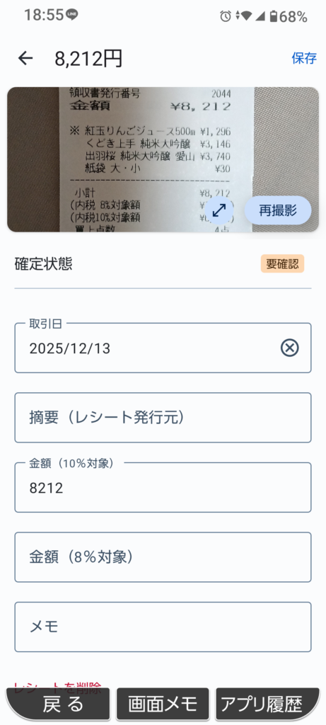 レシート読み取り機能を見る際、まず確認したいのが日付と金額です。