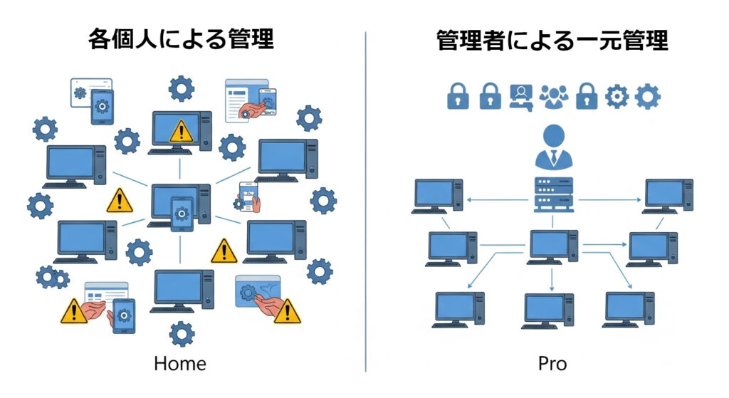 Homeでは会社として十分な端末管理ができません。
