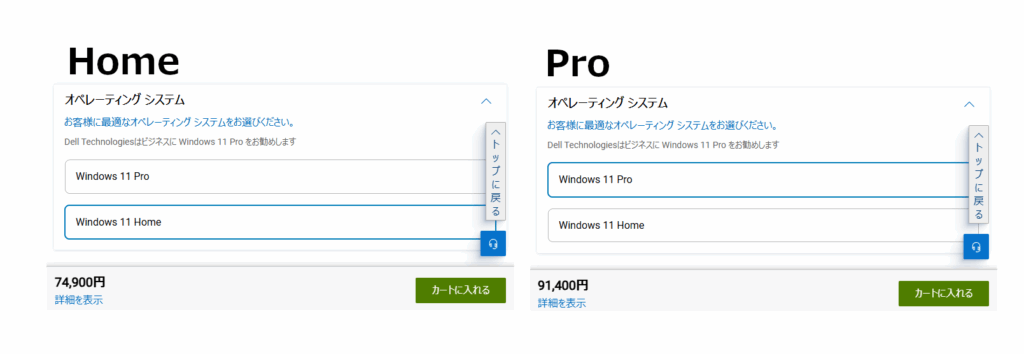 実際、メーカー製PCでは Homeのほうが1〜1.5万円ほど安いため、